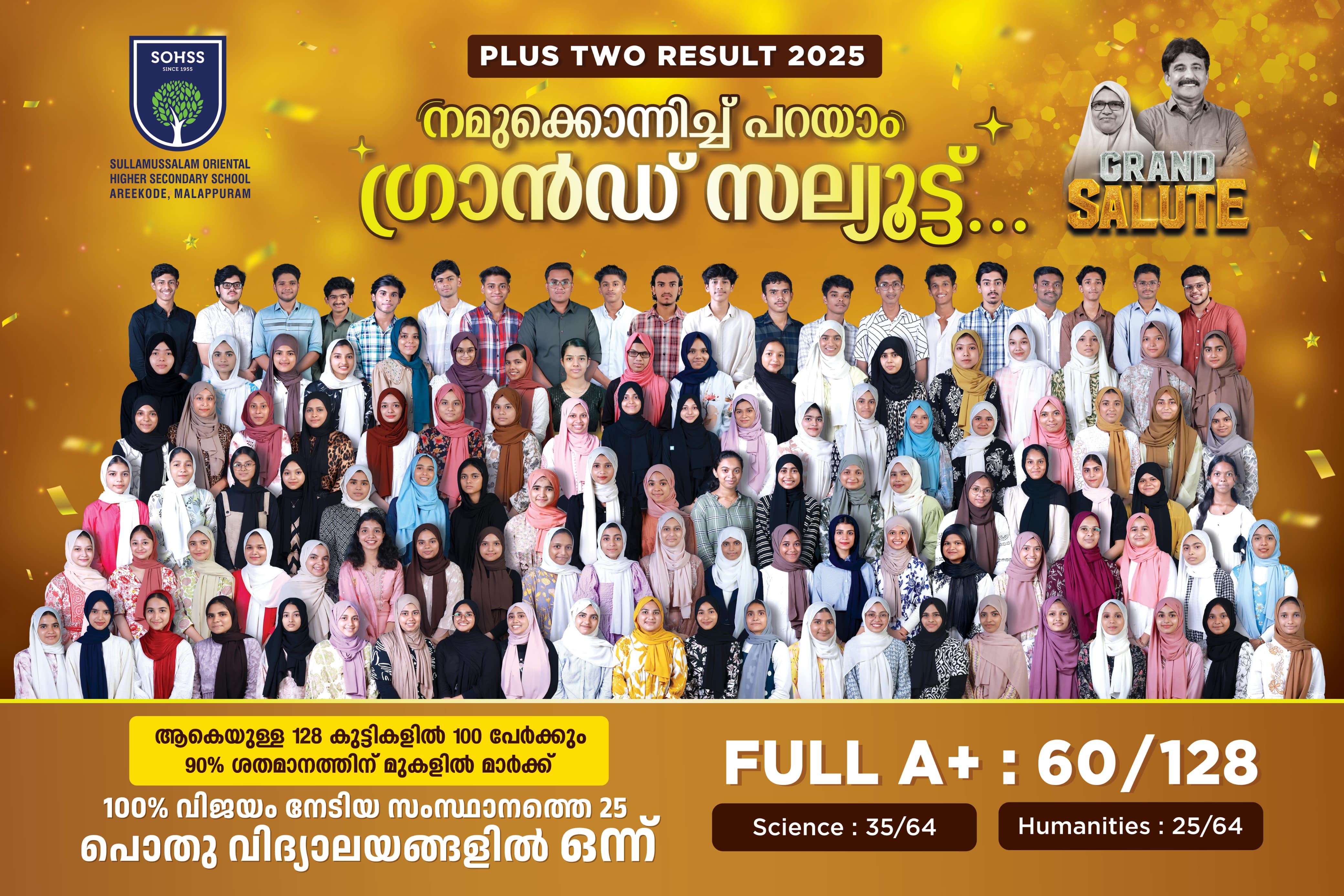 Sulamussalam Oriental Higher Secondary School, Areekode, was founded in 1955 by a group of visionaries under the Oriental Scheme of education charted out by Moulana Abul Kalam Azad, India's first Minister for Educational Affairs.